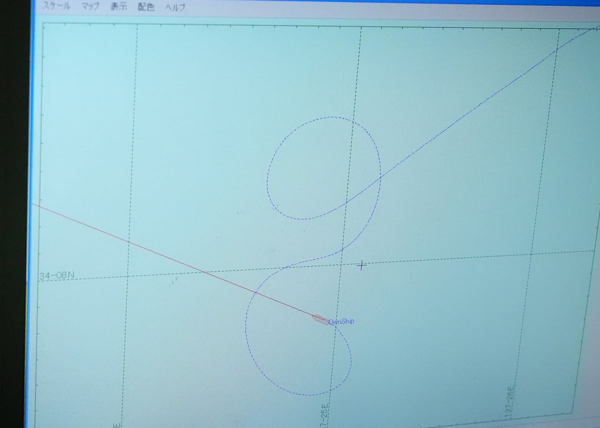 「8の字航走」とはその名の通り船を8の字に航行させ、あらゆる方位(360°全方向)の磁気データを取得する作業をいいます。それぞれのデータは磁力計のキャリブレーション(校正)に使用されます。本航海中は船の移動に応じて地磁気の強さ・方向が少しずつ変わるため、磁力校正のための「8の字航走」を10回程度実施予定です。