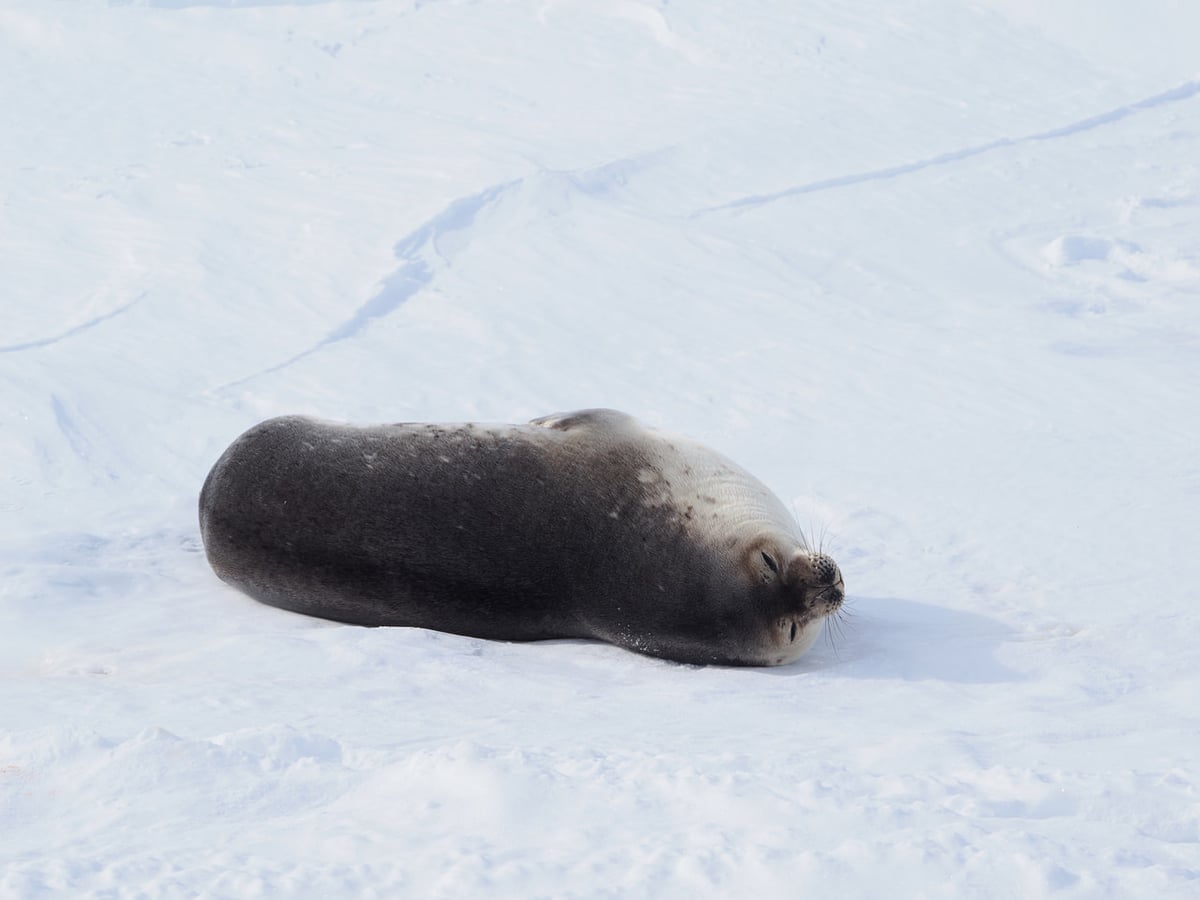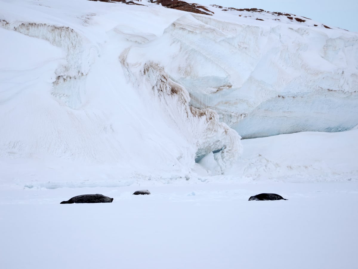 帰路には運良くお昼寝しているアザラシに合うことが出来ました。氷山の壁のような場所でゆっくりと大きな体で横たわっており、2mくらいはあったであろう野生の個体に驚きました。