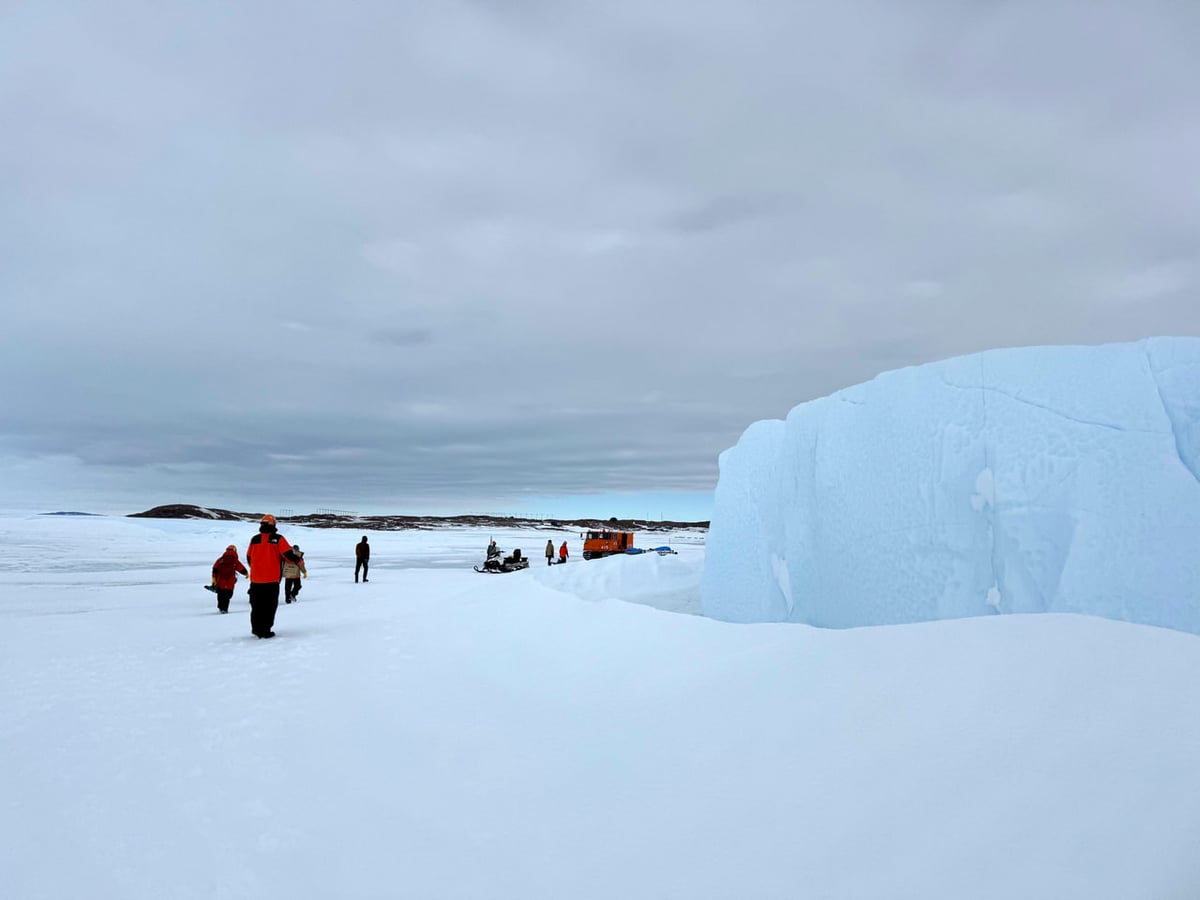 11月3日に昭和基地周辺の北の浦にてアイスオペレーションを実施しました。アイスオペレーションとは、国内の広報活動で活用する「南極の氷」を採取することです。今年は海氷の状態が不安定でしたが、昭和基地のすぐそばまで多数の氷山が近づいていたので、近場での採取が可能となりました。何度かに分けて実施する予定ですが、今回は内陸ドーム旅行に参加する越冬隊のメンバーを中心に実施しました。