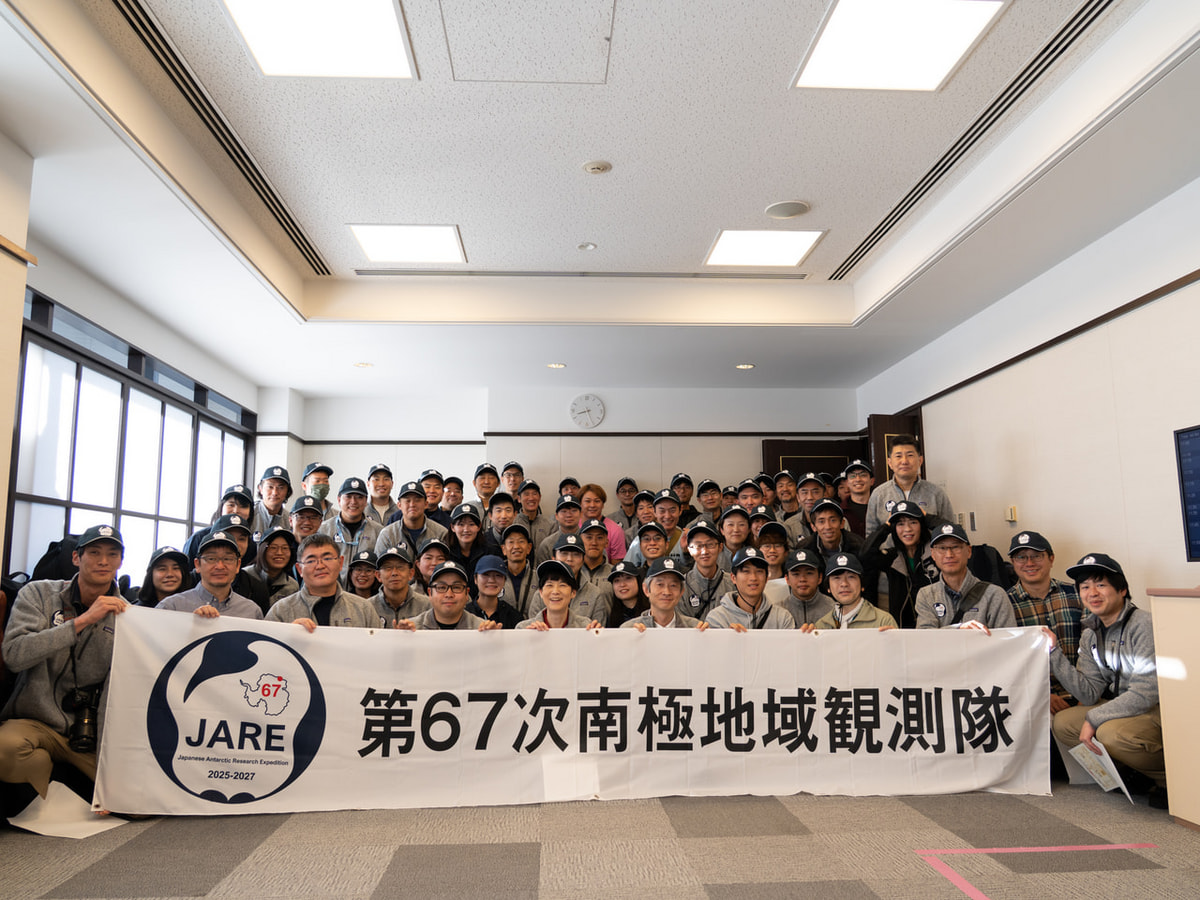 2025年12月4日午前、第67次南極地域観測隊の本隊62名が成田国際空港から出発しました。今晩、オーストラリアのフリーマントル港で南極観測船「しらせ」に乗船し、先に日本から乗船していた1名と合流して計63名で昭和基地へ向かいます。途中、トッテン氷河沖での海洋観測などを実施し、昭和基地到着は1月上旬の見込みです。いってらっしゃい!