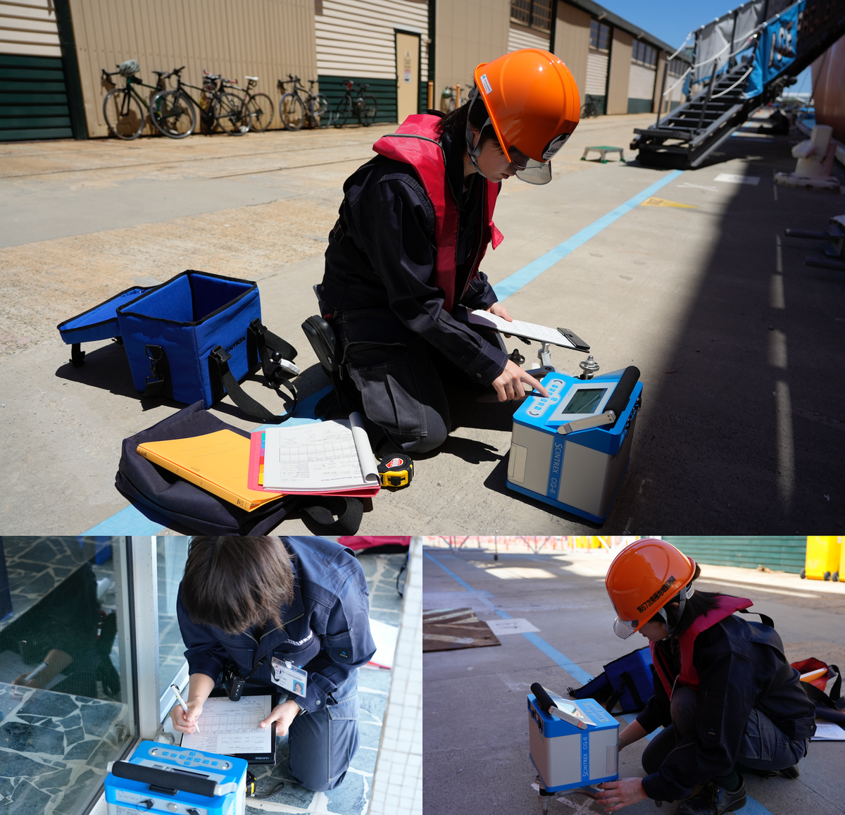 このようにして取得されたデータが、船上の観測結果の補正に用いられています。この日で予定していた内容は全て実施することができたとのこと。岡田隊員、おつかれさまでした!