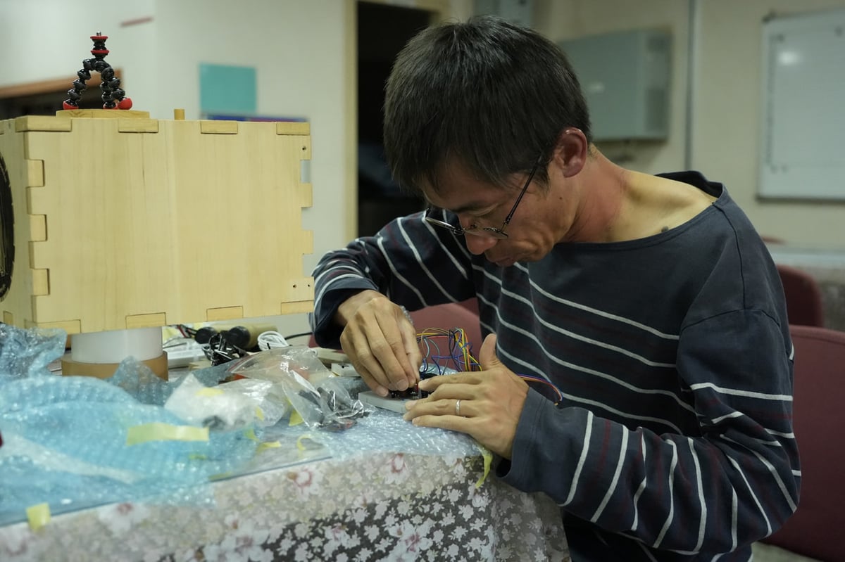 昭和基地で使いたい赤道儀の組み立てを行う宮川先生