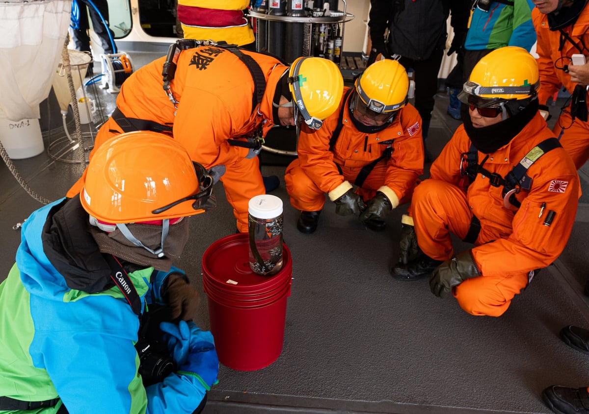 この標本は、CTDとともに採れたので採集時の緯度と経度がしっかりと記録されており、研究用の標本としての価値が高いそうです。千徳隊員の専門の生き物ではないため、帰国後近い分野の研究者に渡すというお話でした。