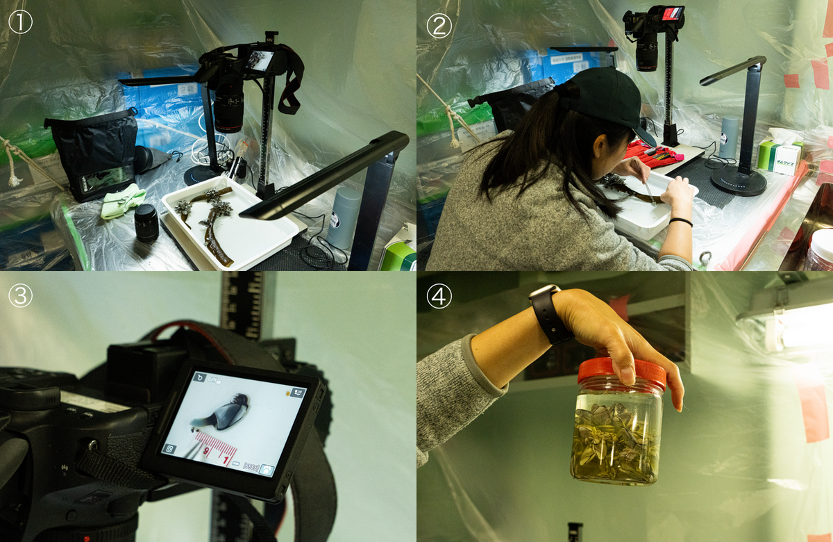 千徳隊員に聞くと、この生き物を標本にするということだったのでその後の作業も見せてもらいました。採泥チームはその名の通り泥の採集だけでなく、底引き網のような機材をつかった生物採集も予定しています。そのため標本をつくるための道具はばっちり揃っていました。