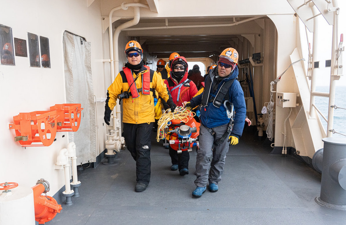 海底圧力計の設置と、前次隊で設置した機器の回収を毎年セットで行うことで、年々のデータを切れ目なく継続して得ることができます。昨年、昭和基地へ入る直前にも海底圧力計の設置を行いました。