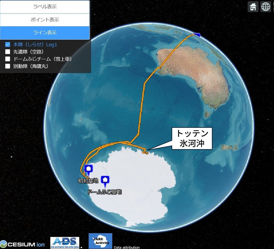 (観測隊はいまどこ?https://www.nipr.ac.jp/antarctic/jare/map67.html を改変)
