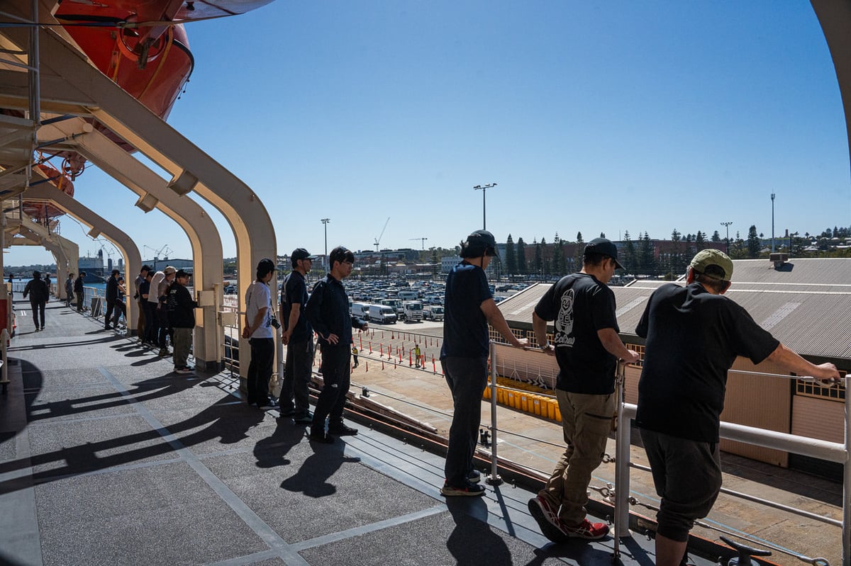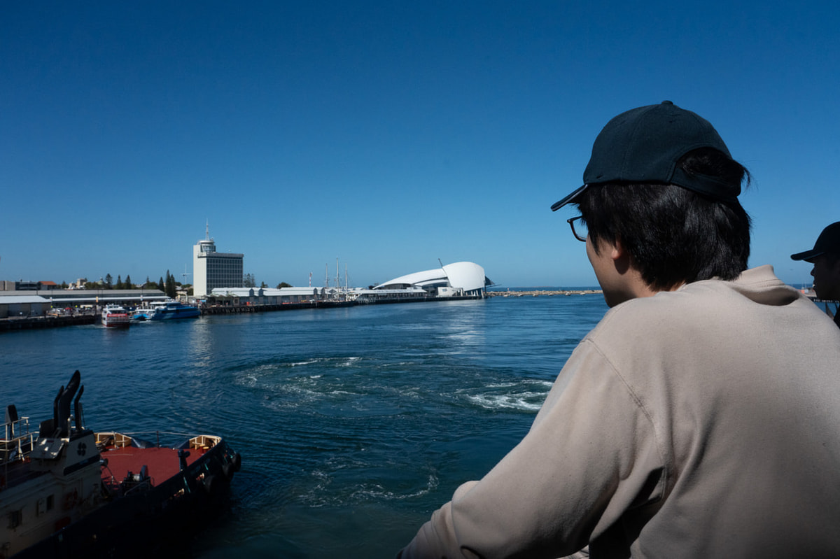 2月23日9時49分(日本時間10時49分)、南極観測船「しらせ」は豪・フリーマントル港に入港しました。入港時には久しぶりの外の景色を見ようと多くの隊員が甲板に集いました。