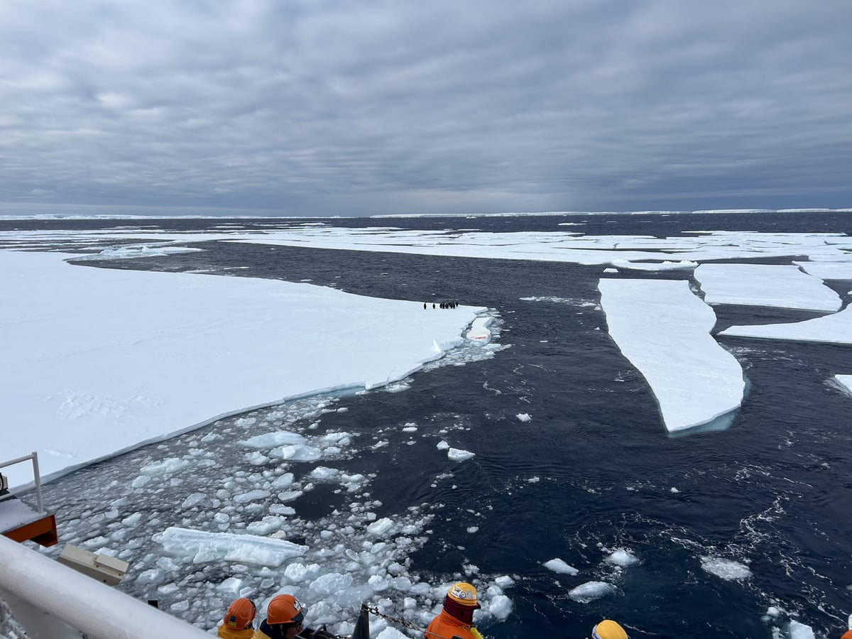 南極観測船「しらせ」船内では、クジラやペンギン、オーロラが視認されると船内放送が流れます。午前中の観測が終わり、午後の観測点へ移動中のとある日「船尾でコウテイペンギン視認」という放送が入りました。