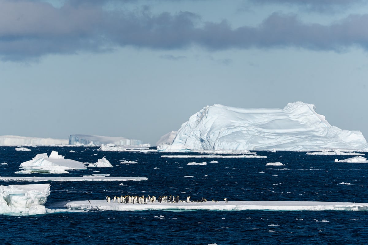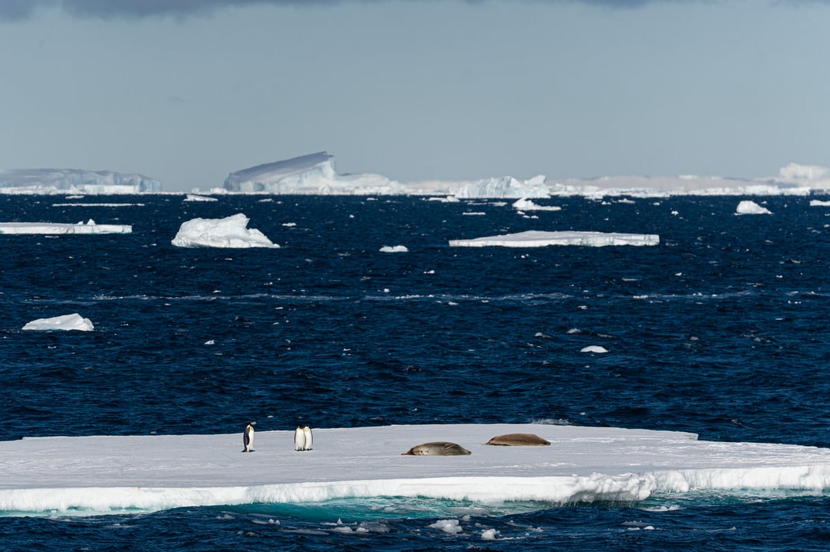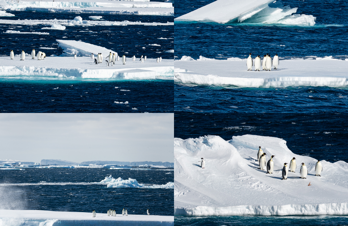 しかも、このほかにもコウテイペンギンの乗った海氷がごろごろと流れてきます。昭和基地ではコウテイペンギンよりふた回りほど小さいアデリーペンギンとよく遭遇するのですが、繁殖地の遠いコウテイペンギンは年に数回見ることができれば良い方...というとてもレアな存在。「しらせ」の航路上で出会うことも珍しく、昨年のレグ2期間では1、2匹みられた程度という話でした。