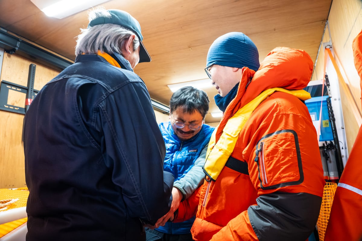 現場が騒然としたのも束の間、MONACAチームの二人が音響装置からMONACAに「再潜航後、移動しながら再浮上」の指示を送ることを決断します。何度かのトライの末、命令を受け取り航行を再開したMONACA。しかし、その後も機体を視認することはできずもどかしい時間が続き、再び得られた音響反応から再浮上でもMONACAが海氷に捕捉されたことが判明しました。