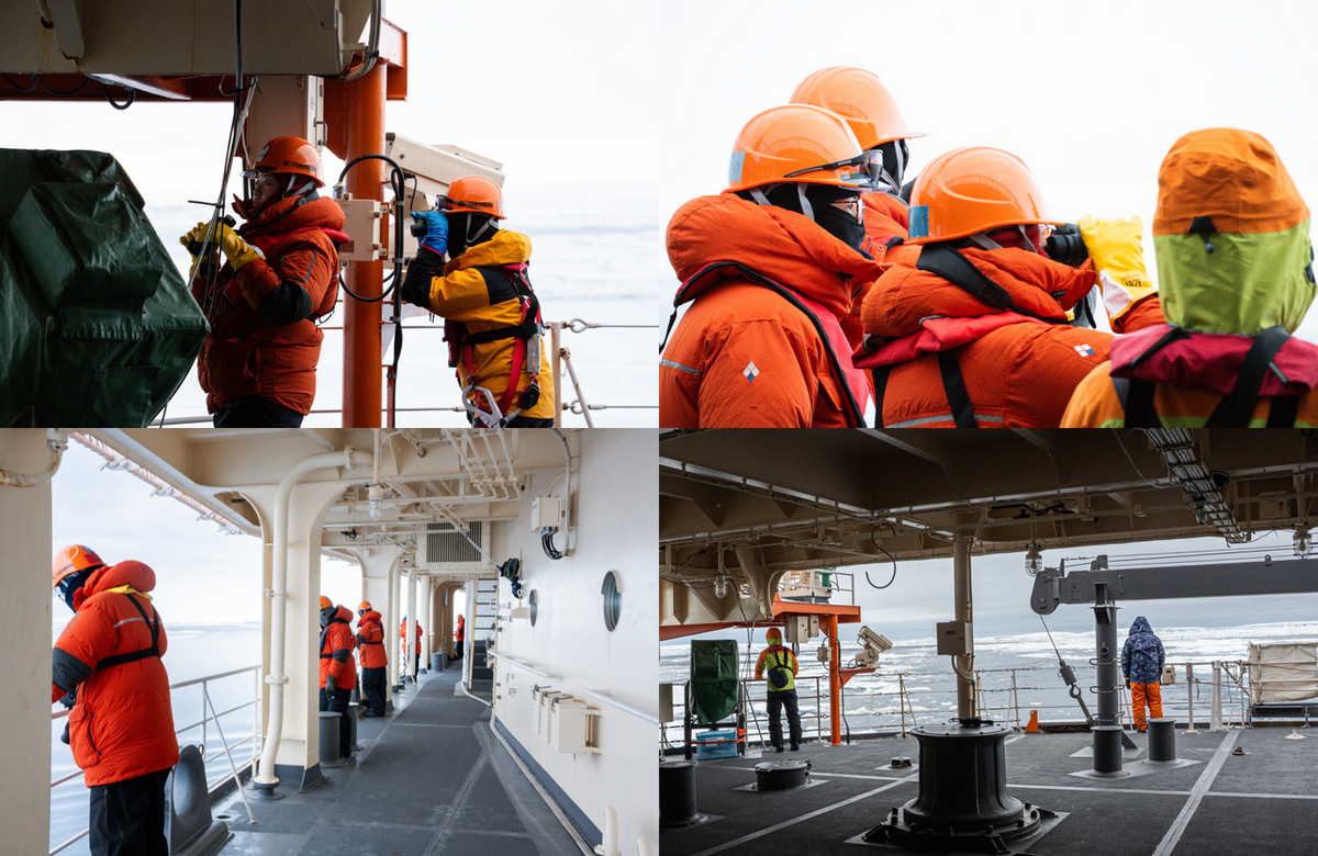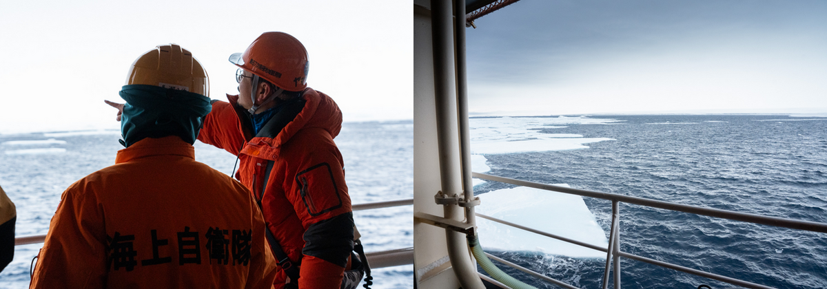 3月21日8:00頃、艦橋にはMONACAチームリーダーの山縣さんのほか、双眼鏡を持った隊員やしらせ乗員が集結していました。