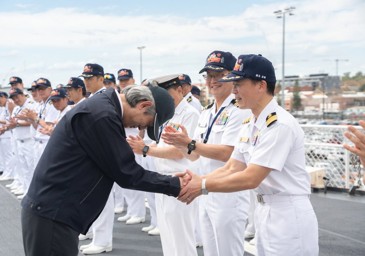 フリーマントルに入港した4月4日午後、南極観測船「しらせ」の飛行甲板で退艦セレモニー(帽振れ)を開いていただきました。レグ1から継続して乗船している隊員は約4ヶ月、レグ2から参加の隊員も1ヶ月以上にわたりお世話になった南極観測船「しらせ」と、乗員の方とのお別れです。